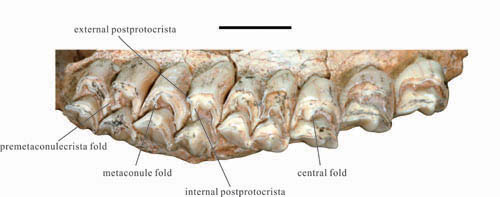 图3采自甘肃临夏盆地的大真角鹿(Euprox grandis)牙齿化石,正型标本(侯素宽供图)
