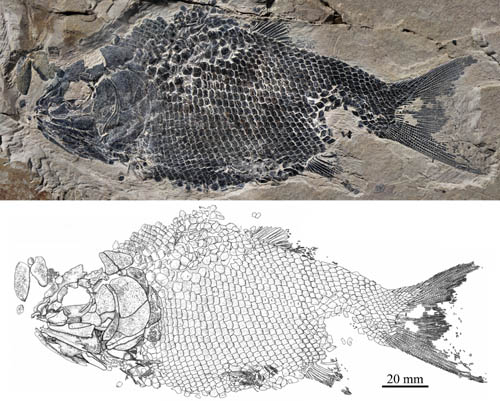 据最新一期的《古脊椎动物学报》报道,中国科学院古脊椎动物与古人类研究所研究人员在贵州盘县三叠纪地层中发现近鲱形类(Halecomorphi)预言鱼目(Ionoscopiformes)新属种化石,命名为奇异盘县鱼(Panxianichthys imparilis)。该发现代表了预言鱼目最原始的属种,为研究近鲱形类的早期演化和生物地理提供了重要信息。