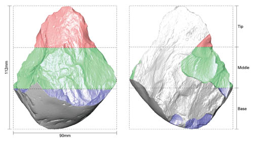 2015年9月2日,《公共科学图书馆-综合》(PLoS ONE) 在线发表了中国科学院古脊椎动物与古人类研究所李浩博士、李超荣研究员与南非金山大学地理、考古与环境研究学院Kathleen Kuman教授的最新研究成果—基于三维扫描技术的丹江口库区手斧加工程度定量分析。该研究系首次将三维扫描方法应用到中国旧石器遗址石制品技术的分析中。通过计算修疤密度指标(Scar Density Index)和修疤面积指标(Flaked Area Index),研究者定量获取了丹江口库区手斧的加工程度信息,并进而对影响手斧加工程度的各种可能因素进行了统计学分析。该研究显示了三维扫描方法在石制品技术分析中的优势和潜力,为今后更有效的测量各类石制品的减核程度(剥片和加工)提供了参考。