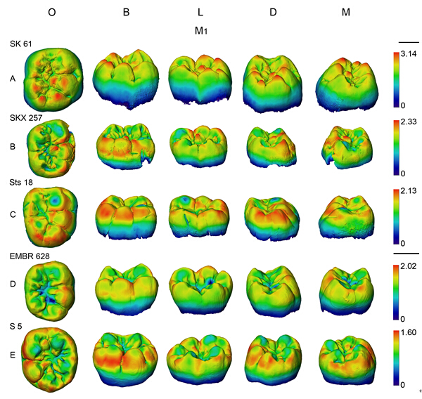 他们借助高分辨度工业CT扫描技术,对南非出土的早期人属成员牙齿的内部三维形态特征进行了观察,通过与南方古猿、尼安德特人及现代人牙齿的对比和分析,发现南非早期人属成员的牙齿釉质三维分布特征与晚期人属成员相同,而与同时代或较早的南方古猿有显著差别。