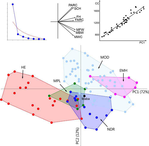 图2 主成分分析结果显示马坝人脑大小和形状位于欧洲中更新古人类、尼安德人和现代人变异范围之间(吴秀杰供图)