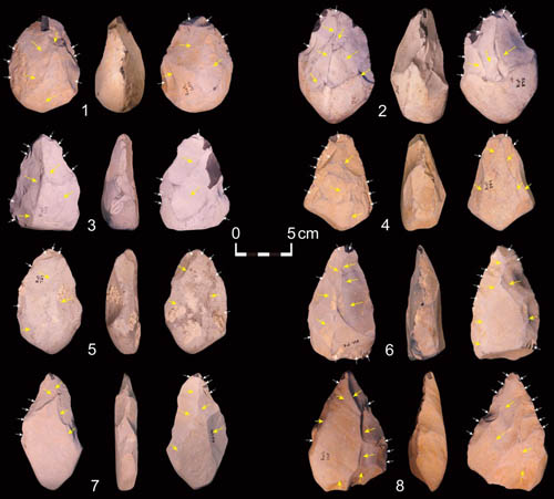 图2:距今50万年的Cave of Hearths遗址出土的部分手斧标本 (李浩供图)