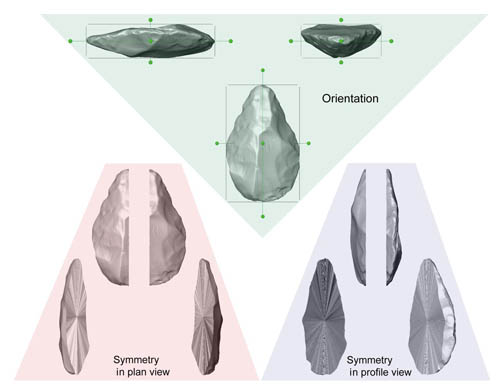 图3:手斧正视和侧视下的对称性定量分析图示(李浩供图)