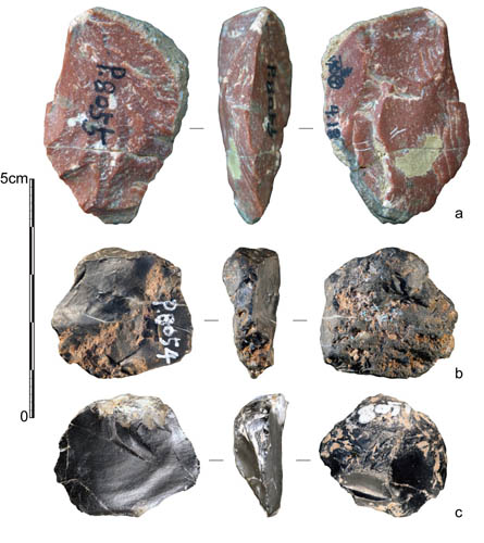 图4:龙骨洞遗址发掘出土的石核和石片(李浩供图)