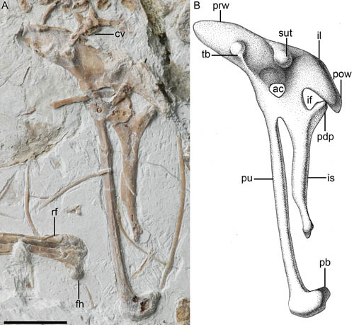 图3. 奇异食鱼反鸟腰带骨骼(王敏、史爱娟供图)
