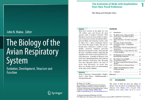 2017年5月,中国科学院古脊椎动物与古人类研究所的王敏与周忠和结合近年来发现的鸟类化石,以及基因组对现生鸟类谱系关系的研究结果,对鸟类的演化进行了讨论,特别是在鸟类演化过程中“扮演重要角色”的特征,如羽毛、飞行能力、骨骼和呼吸系统等,该成果发表在施普林格(Springer)出版的《The Biology of the Avian Respiratory System》一书中。