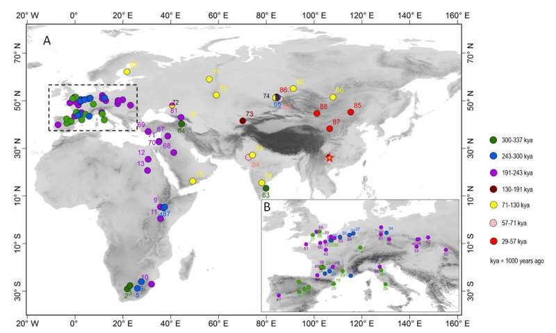 勒瓦娄哇遗址发现地点与年代分布图,星号者为观音洞遗址(胡越 供图)