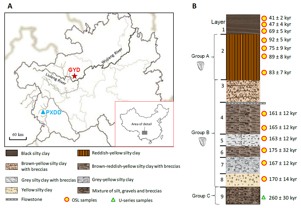 观音洞遗址地理位置、地层与年代(胡越 供图)