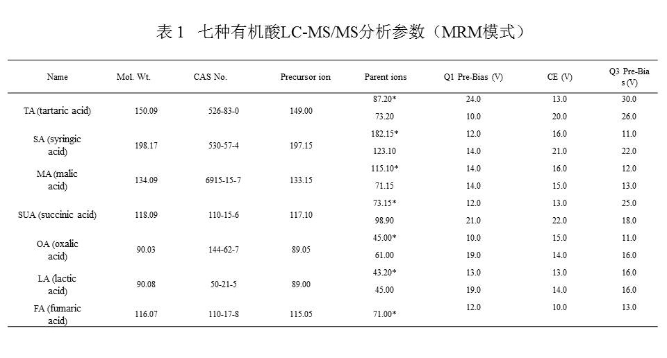 基于上述流程,对山西垣曲周代北白鹅墓地出土铜壶内的液体和淤泥遗存(图2)进行分析。顶空进样GC-MS在液体样品中检测到乙醇、乙酸、乙酸乙酯的存在。常规GC-MS在所有样品中检测到与现代葡萄酒类似的有机酸、醇、酯、糖类物质。LC-MS/MS的分析进一步确认了丁香酸等若干有机酸的含量。