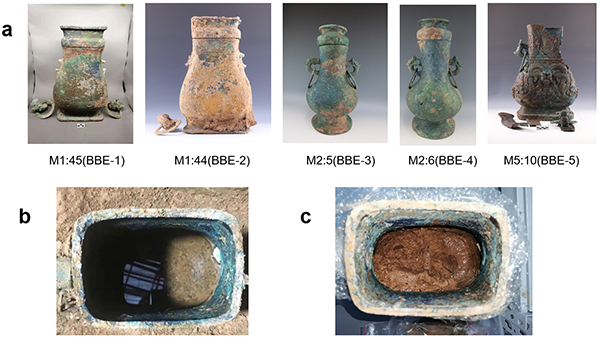 图2.山西垣曲北白鹅墓地出土铜壶内的液体和淤泥遗存