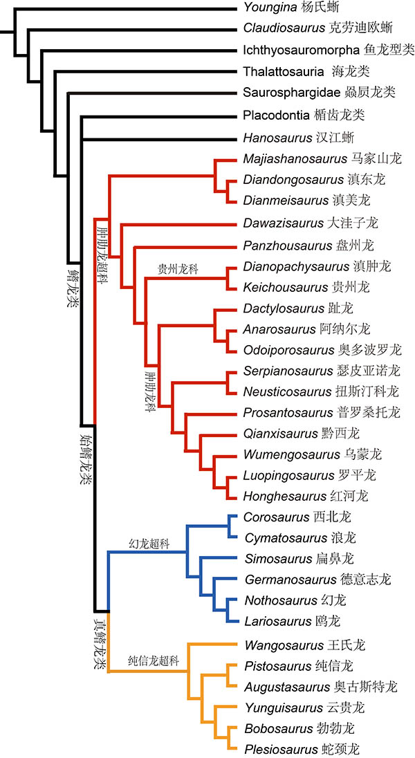图3,奇异罗平龙与其他海生爬行动物系统发育关系 (徐光辉供图)