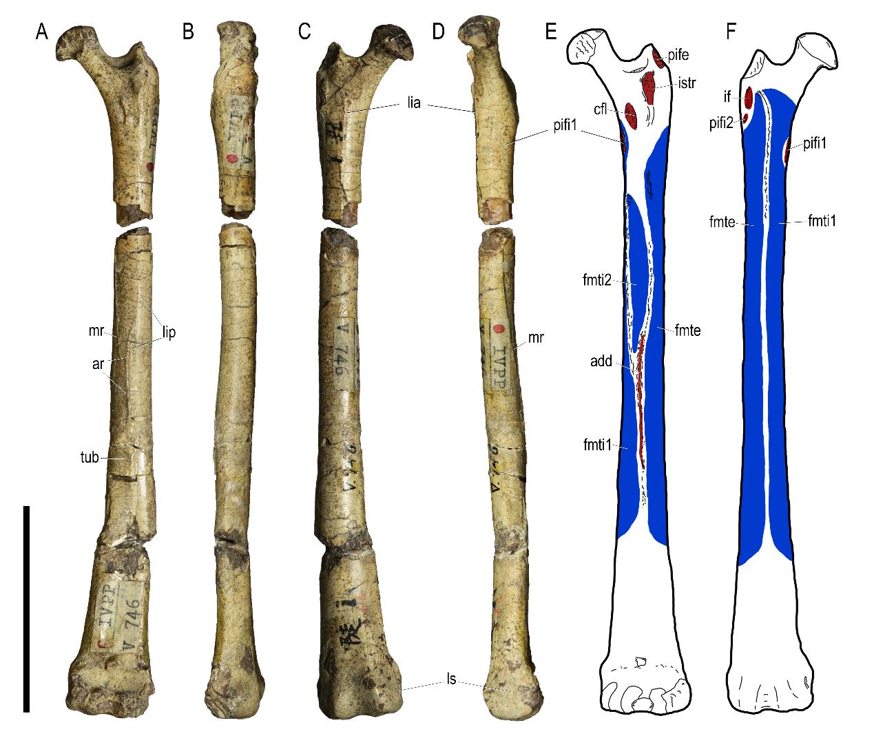 图 1山东莱阳下白垩统青山群陡山组神龙翼龙超科的股骨(IVPP V 746)