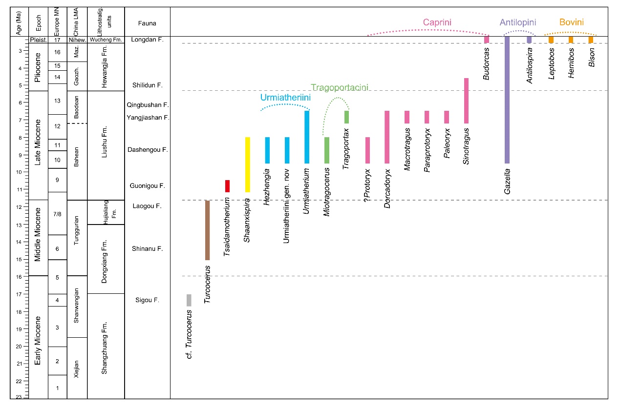 牛科动物是欧亚大陆新近纪哺乳动物群的重要成员,具有很高的生物多样性与较快的演化速率,对生物地层与古环境古气候有重要的指示意义。临夏盆地中新世至早更新世的地层中,牛科化石丰富,为了解中国牛科动物的演化历程提供了重要的材料基础。近日,国际学术期刊《古地理古气候古生态》(Palaeogeography, Palaeoclimatology, Palaeoecology)发表了中国科学院古脊椎动物与古人类研究所相关研究成果,系统总结了临夏盆地化石牛科动物的地层分布和演化序列,比较了中国北方不同化石地区之间的年代关系,讨论了临夏盆地不同化石牛科动物组合反映的古环境信息。