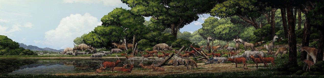 图4 临夏盆地晚中新世大深沟动物群生态复原图(陈瑜绘)
