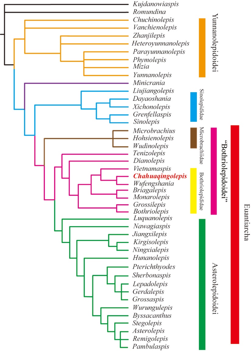 沟鳞鱼科是在泥盆纪末期就已绝灭的盾皮鱼纲胴甲鱼目中的一个单系类群,其模式属沟鳞鱼属(Bothriolepis Eichwald,1840)的研究历史悠久,是胴甲鱼类中分布最广泛、多样性最高的一个属,全球发现的该属中种的数量迄今已超过60个。除模式属以外,以往得到学界认可的、归入沟鳞鱼科的属仅包括5个——发现于中国云南武定的Wufengshania、越南北部的Vietnamaspis、澳大利亚东南部的Monarolepis与Briagalepis,以及产于欧洲波罗的海与比利时的Grossilepis,而在哈萨克斯坦及中国云南武定地区分别发现的Tenizolepis与Dianolepis则被看作沟鳞鱼类中的基干类群。在中国云南武定及曲靖地区距今约4亿年前的下泥盆统中发现的沟鳞鱼未定种(Bothriolepis sp.)及五凤山鱼(Wufengshania)代表了沟鳞鱼类最早的化石记录,指示华南是沟鳞鱼类的起源和演化中心。华南是全球深入开展沟鳞鱼类研究最重要的地区。