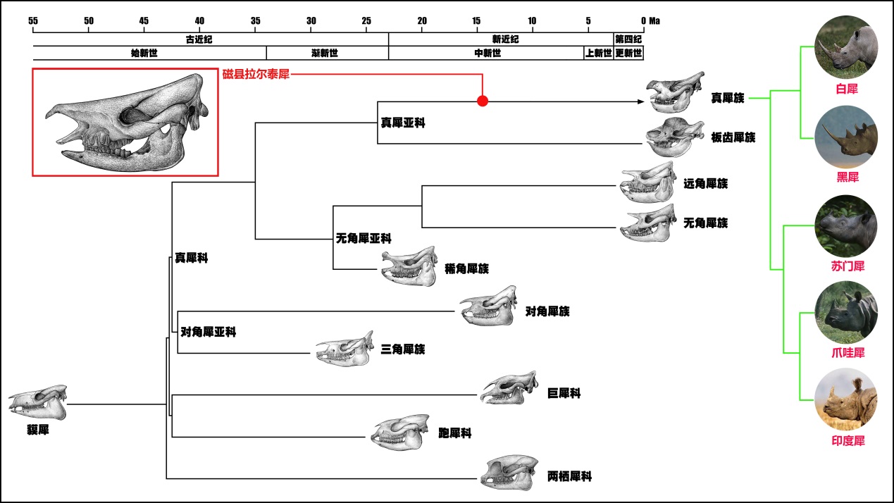 图1 磁县拉尔泰犀在犀超科家族中的位置