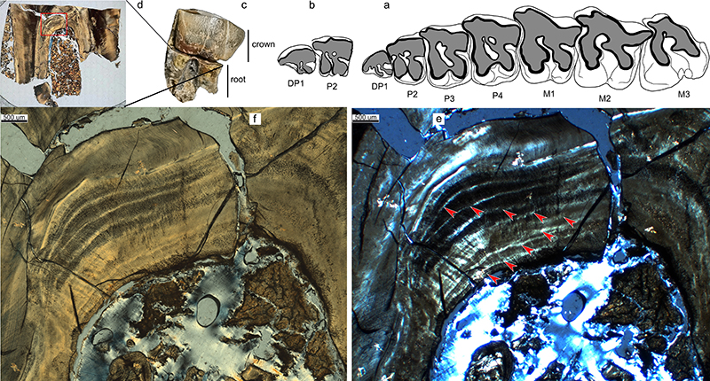 图2 细近无角犀上牙第一乳前臼齿齿根切片显示生长纹