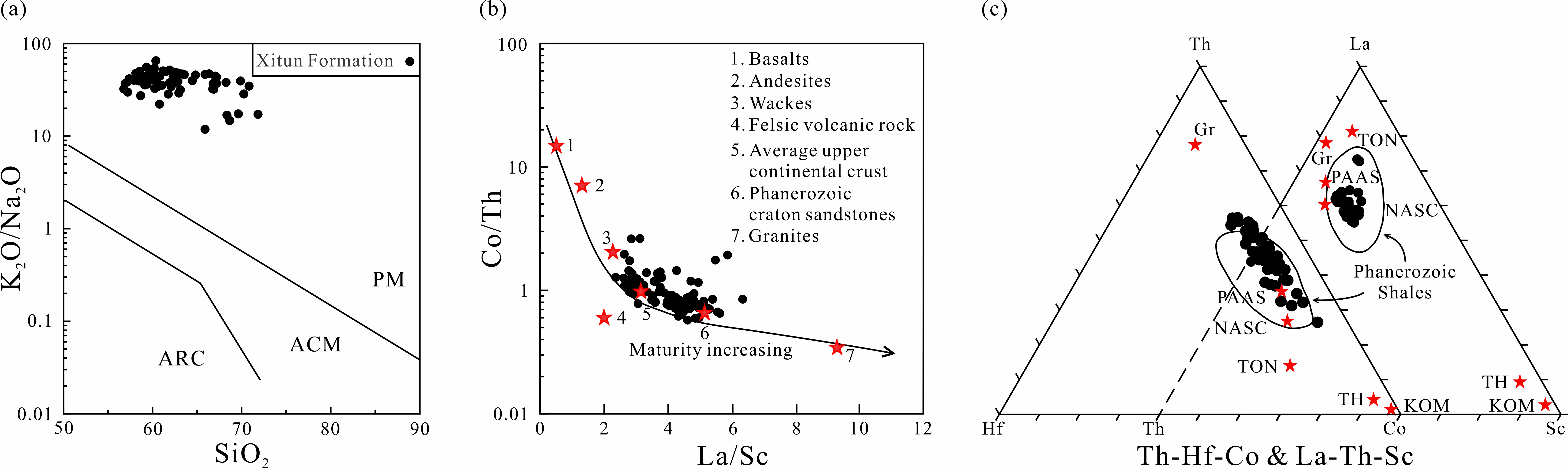 图3 西屯组的沉积构造背景判别图解