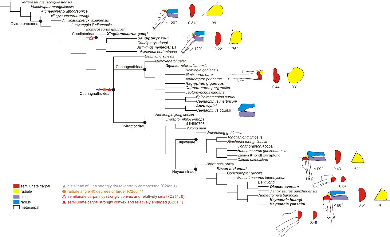 图5. 系统发育展现窃蛋龙类演化过程中腕部的变化