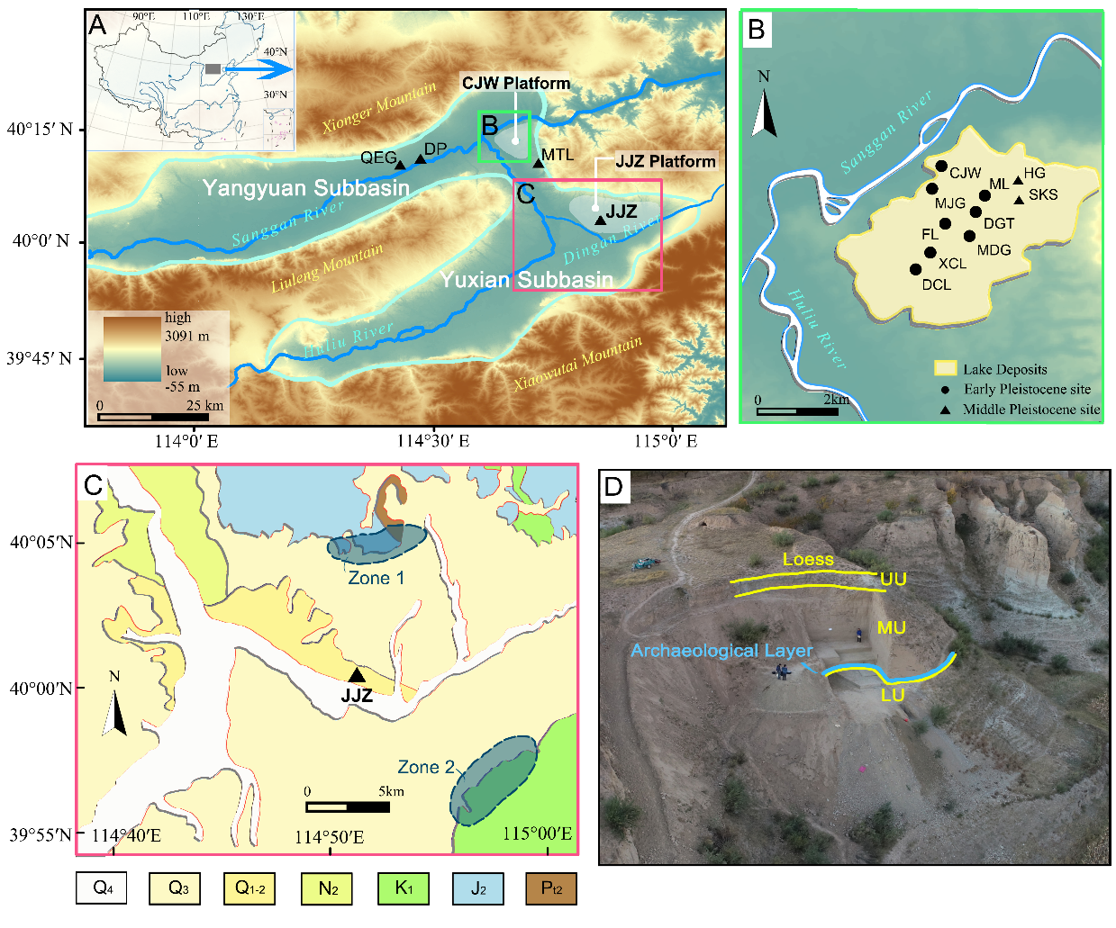 泥河湾盆地位于黄土高原东北部、蒙古高原向华北平原过渡地带,以密集分布上百处古人类活动遗址为国际学术界广泛关注,是构建东亚古人类演化、技术发展和环境适应策略的关键区域。然而,以往的发现与研究多集中在早更新世和中更新世晚期以后的古人类活动信息,缺乏中更新世早期的活动证据,制约了对该区域长时间尺度下古人类技术演化序列的构建和生存模式的阐释。