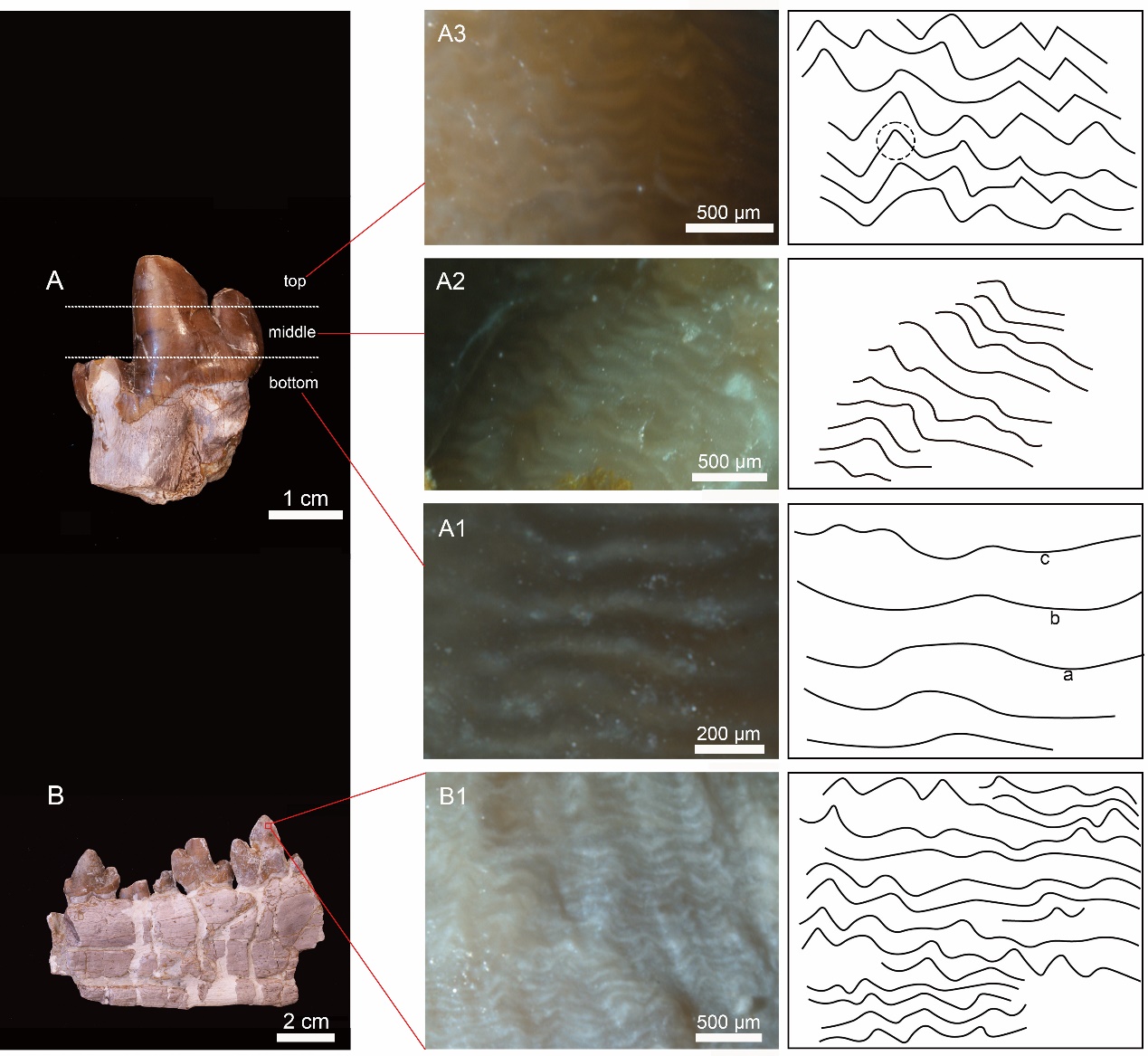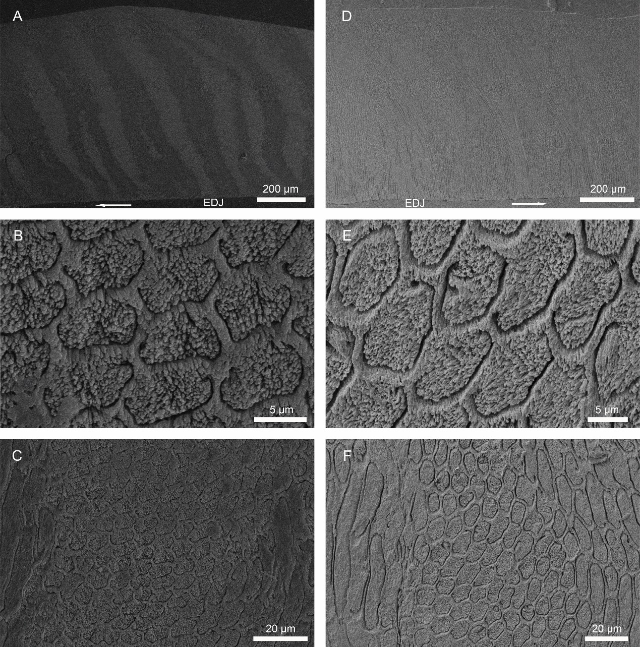 图2. 渑池东方翼齿兽下臼齿牙釉质微观分析