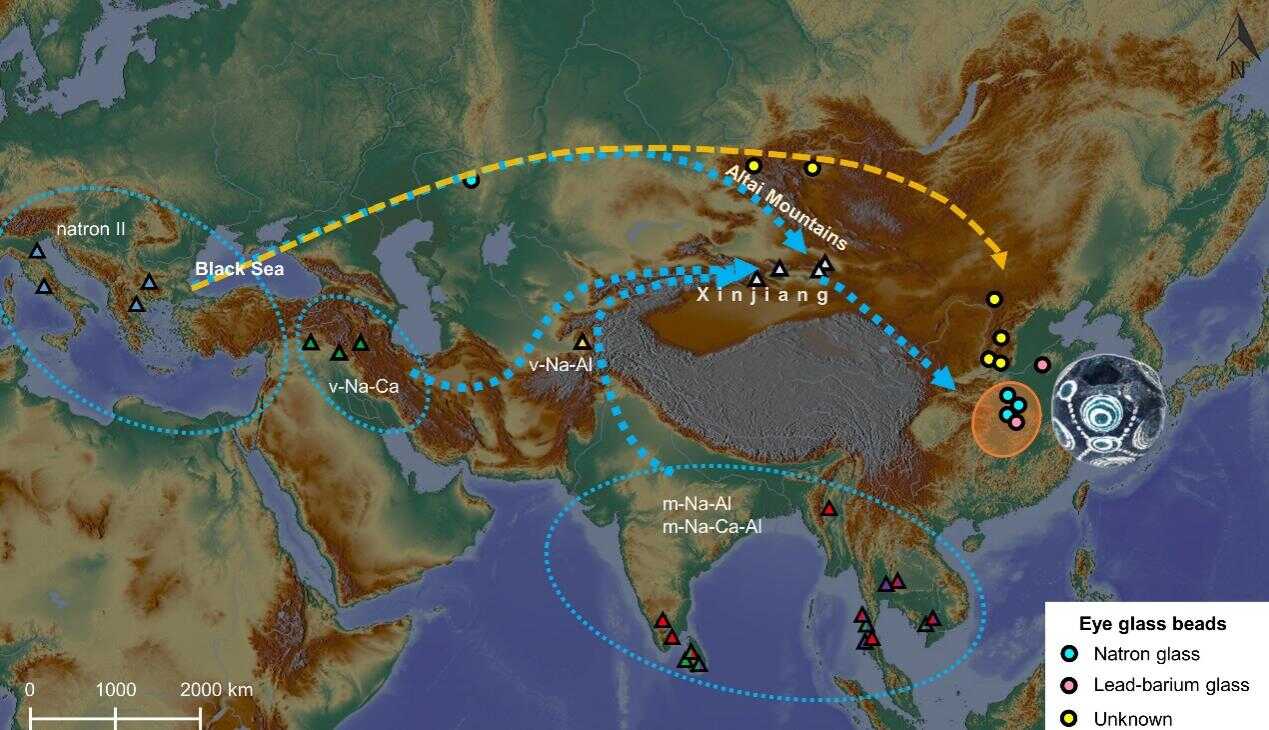 玻璃是人类历史上最重要的材料之一。早在公元前一千纪,地中海、美索不达米亚、南亚和东南亚等地区以钠玻璃生产而著称,而中国则以铅钡玻璃生产而闻名。作为古代玻璃制品的重要代表之一,蜻蜓眼玻璃珠最初出现在埃及和美索不达米亚,并于春秋晚期经由欧亚草原传入中原。过往研究表明,中国铅钡玻璃蜻蜓眼珠的出现受到外来钠玻璃的影响。然而,后者究竟如何影响了铅钡玻璃珠的制作?要圆满回答这一问题,需要深入了解铅钡玻璃的矿料来源和制作工艺。