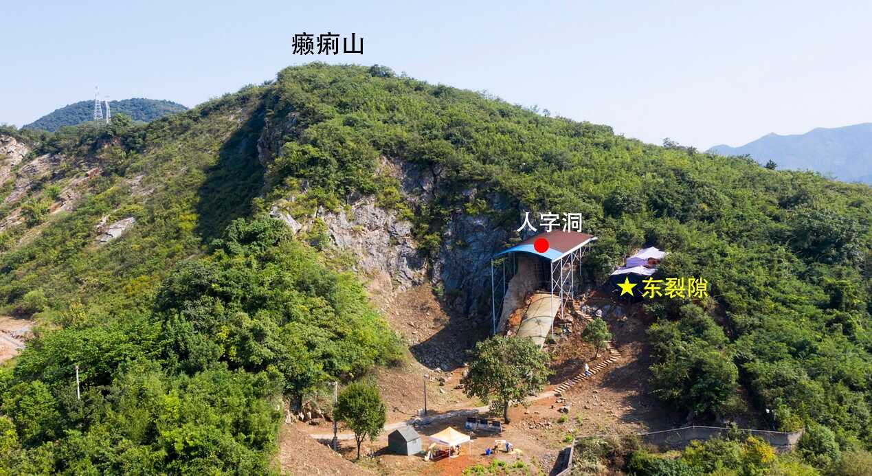 图1 安徽繁昌癞痢山人字洞遗址和东裂隙的航拍图(肖本祥摄)