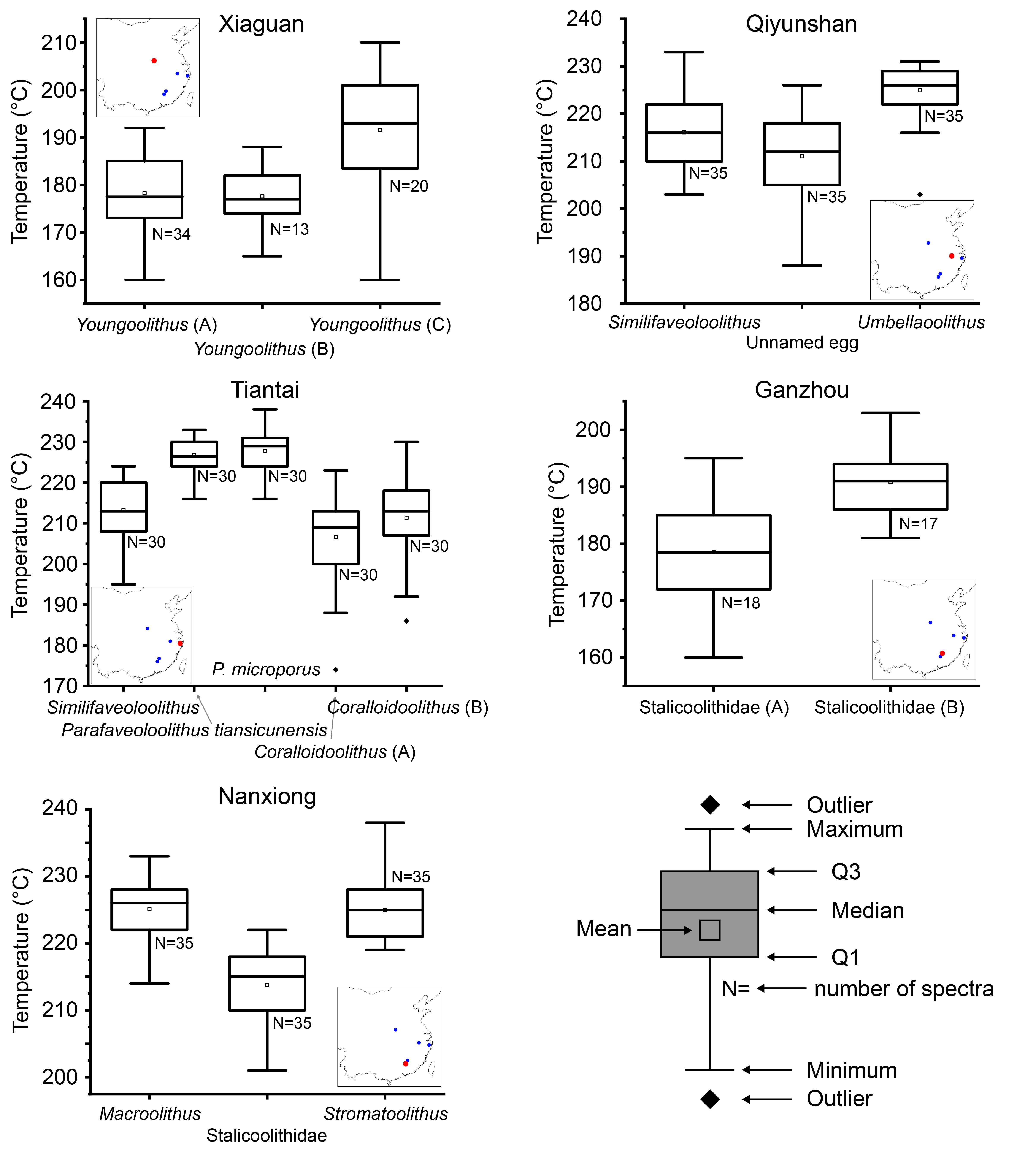中国内陆到沿海地区蛋壳化石的最高埋藏温度