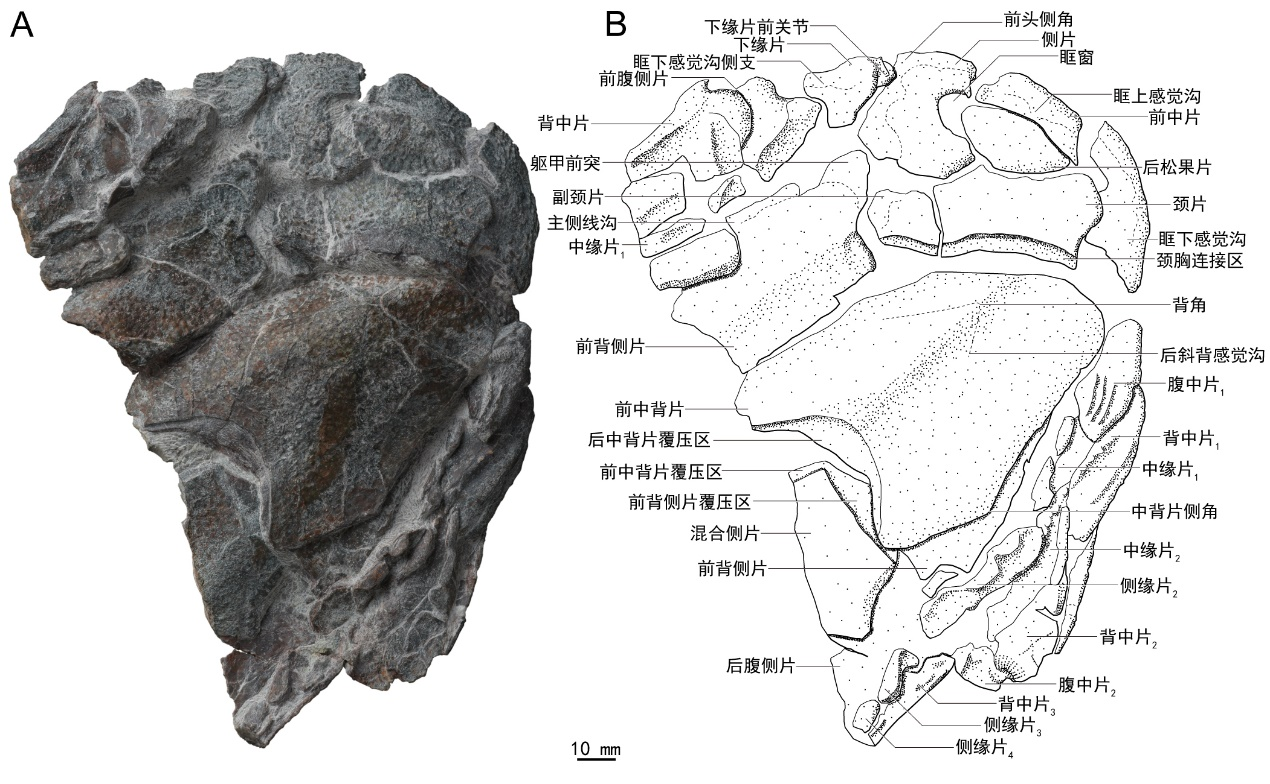 近日,国际古生物学专业期刊《瑞士古生物学杂志》(Swiss Journal of Palaeontology)刊登了中国科学院古脊椎动物与古人类研究所朱敏院士团队的最新科研成果。该研究报道了一种产自云南曲靖会泽县中泥盆世(约3.9亿年前)的胴甲鱼类新属、新种——凹甲铜都鱼(Tongdulepis concavus,图1)。这一成果不仅确立了图巴鱼科的合理性,进一步厘清了胴甲鱼类的系统发育关系,而且再次巩固了云南曲靖“古鱼王国“在泥盆纪时期作为全球鱼类辐射演化中心的重要地位。