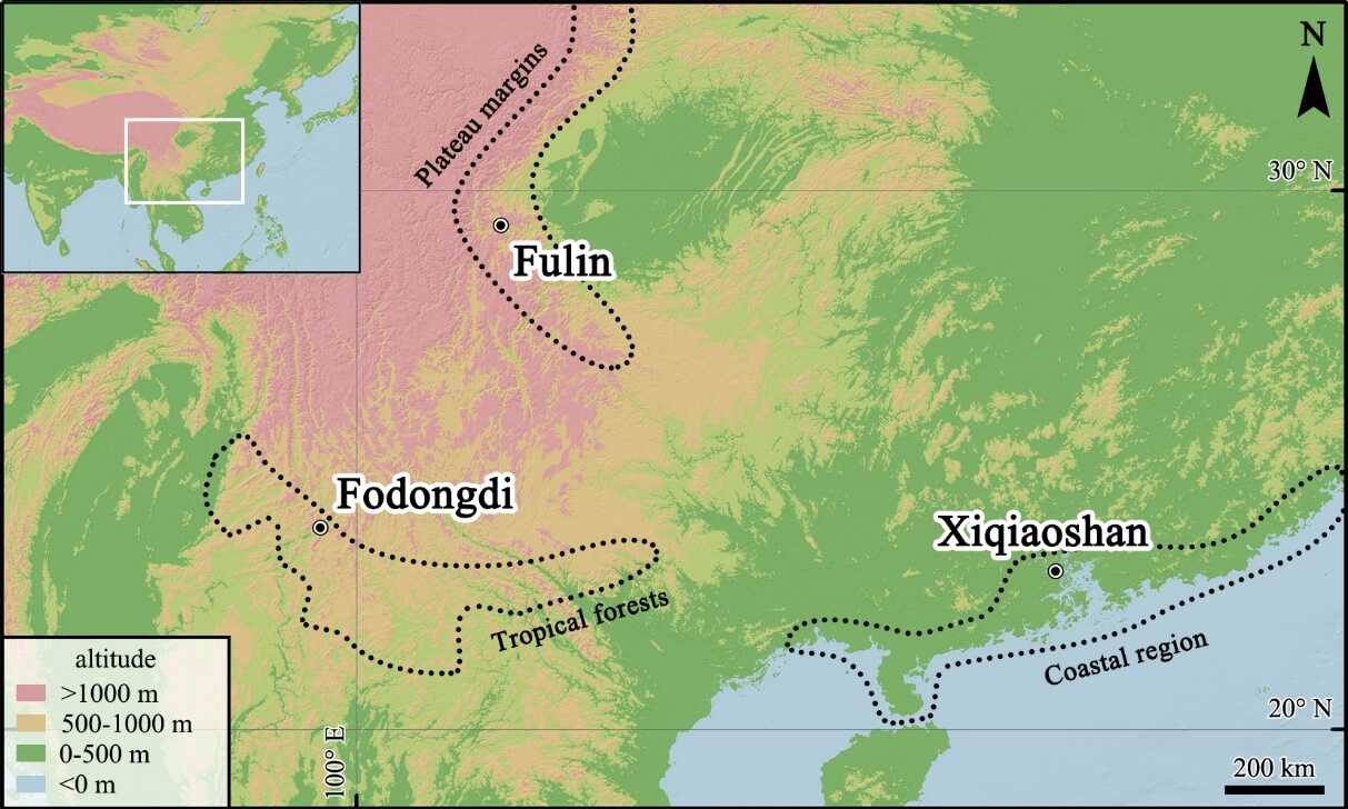 图1 研究涉及的三处遗址的地理分布