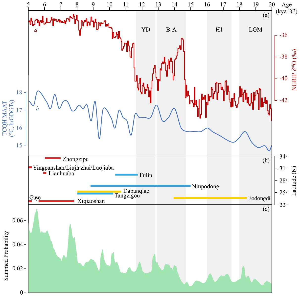 图4 中国南方地区部分小型石制品组合与气候背景、人口动态的时空分布关系