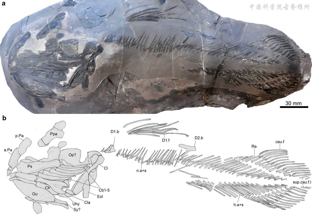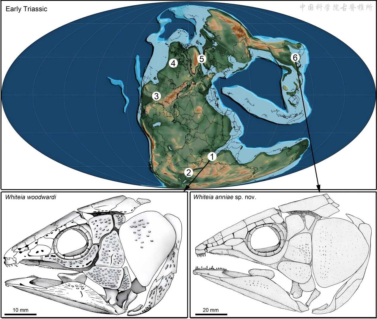 腔棘鱼类是一类生存了数亿年的肉鳍鱼类,其演化历史可追溯至早泥盆世,在由水生到陆生的四足动物演化中具有重要的研究地位。二叠纪末生物大灭绝之后,腔棘鱼类在三叠纪早期达到分类多样性的高峰,但在此时的亚洲,腔棘鱼化石记录极为零散,已知的两个属——中华腔棘鱼和巢湖鱼,均基于保存不佳的标本,限制了学界对腔棘鱼类演化格局的理解。为解决这一问题,中国科学院古脊椎动物与古人类研究所研究员徐光辉和巢湖学院戴清华等国内多家单位科研人员,在安徽和县早三叠世海相沉积地层(和龙山组)发现了两块保存精美的腔棘鱼化石标本。经详细对比研究,科研人员确认这些标本属于腔棘鱼目怀特鱼科,并建立了怀特鱼属一新种——安妮怀特鱼。