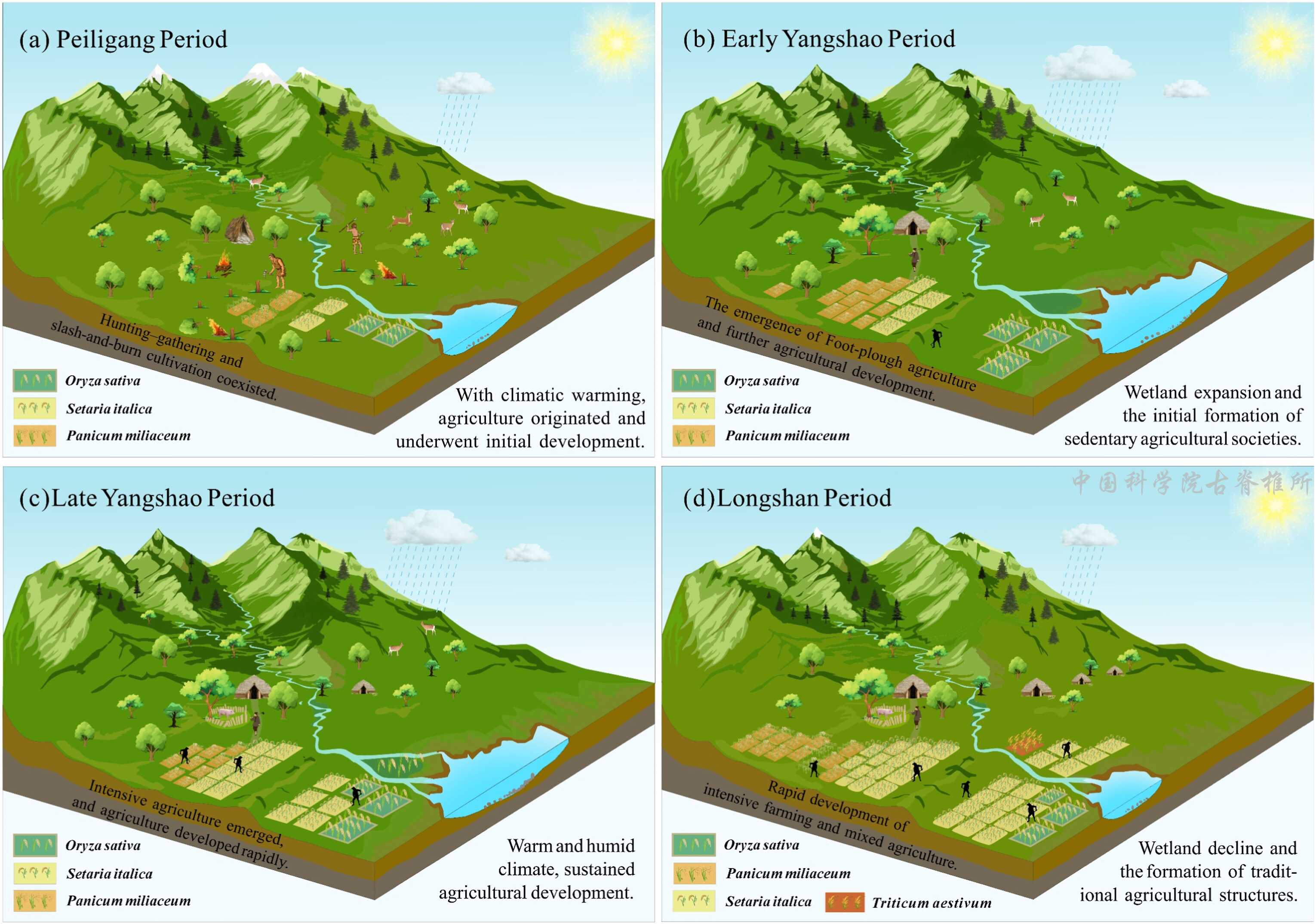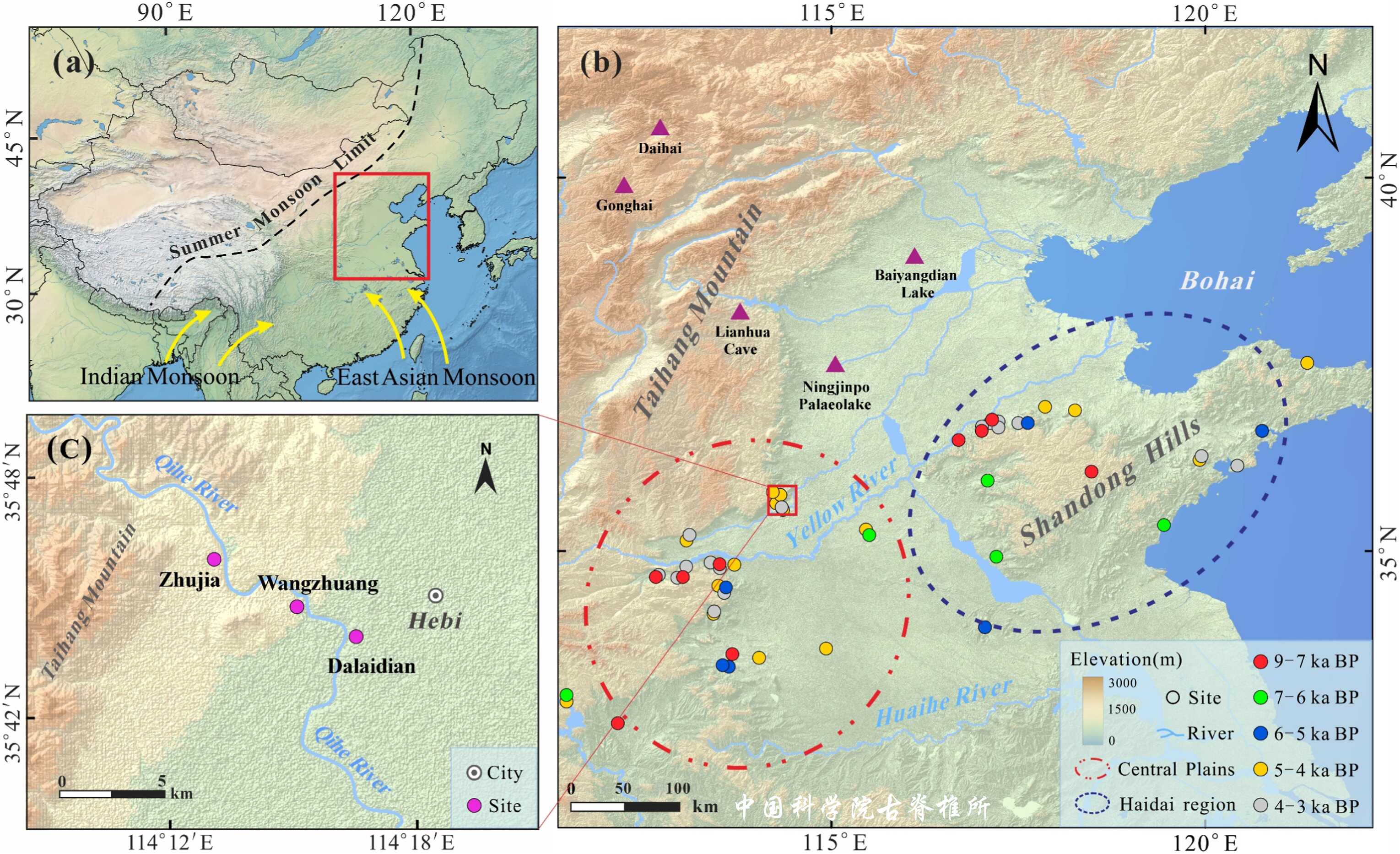 气候变化一直深刻影响着人类社会的发展和变革,而史前农业社会的形成与发展也从未脱离气候环境的影响和制约。全新世以来,随着气候的逐渐变暖,早期的狩猎采集者通过不断调整生存策略以提高其生态适应能力,越来越多的植物、动物资源被纳入到早期人类的食谱当中,生业模式逐渐发生改变,农业生产逐渐成为人类适应和改造自然环境最主要的生计方式。然而,气候变化引发的突发性降温事件以及持续性干旱事件也在深刻影响着史前农业社会的发展,深入理解不同气候背景下的农业社会演变特征不仅有助于我们了解史前人类适应能力的提升过程,也能够加深对早期农业社会演进历程的深层次理解。