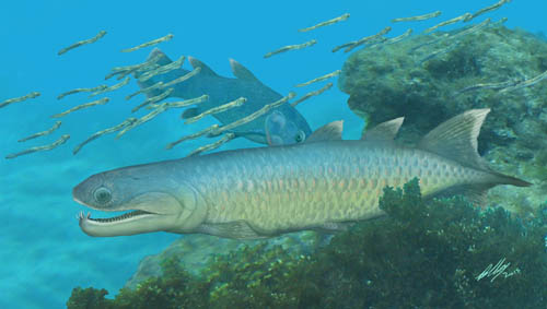 早泥盆世的现代肉鳍鱼类大发展中还出现了一个类群,虽然在生存时间、繁盛程度乃至知名度方面都无法与另外几个大类群相比,但却演化成了那个时代最凶猛的掠食者,这就是爪齿鱼类(Onychodonts)。