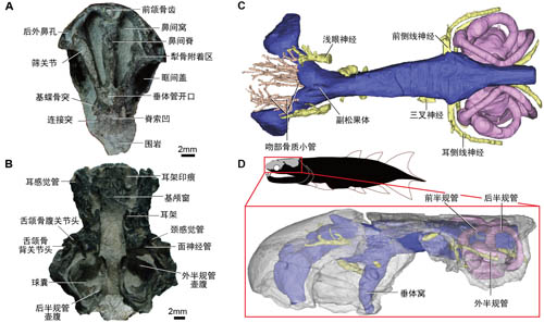 研究还显示,箐门齿鱼的脑颅结构保留了诸多原始特征,特别是过去一些认为爪齿鱼类独有的特征,实际上也是原始肉鳍鱼类的古老特征,这使得爪齿鱼类成为联结肉鳍鱼类干群与冠群的关键环节,更清晰地展示了现代肉鳍鱼类,人类曾经在“鱼类时代”称雄地球水域的鱼形祖先,是如何演化而来的。