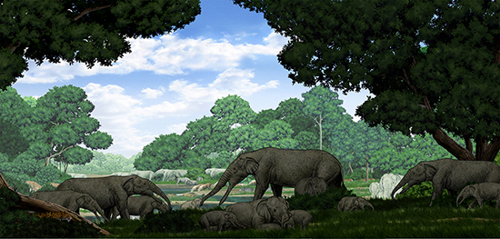 图2:隐齿象生存环境复原图(陈瑜绘)