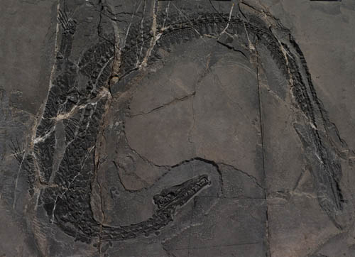 据悉,该化石发现于三叠纪中期的石灰岩地层,近乎完整的骨架代表着一种全新的半水生主龙类。这种动物长约两米,全身被甲,颈粗尾长,口中利齿参差,四肢短小壮硕并且具蹼,是史前近岸海洋环境中凶猛的掠食动物。研究显示这种动物属于非常原始的主龙类,并且与一个北美的罕见类群具有较近的亲缘关系。化石表明作为爬行动物演化的主干,主龙类在其历史的很早阶段就已经开始半水生的海洋生活了,同时也进一步扩展了对所谓“中生代海洋爬行动物”的了解和认识。