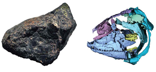 图2 长背鳍阜康鱼头骨的立体保存及CT识别图(徐光辉供图)