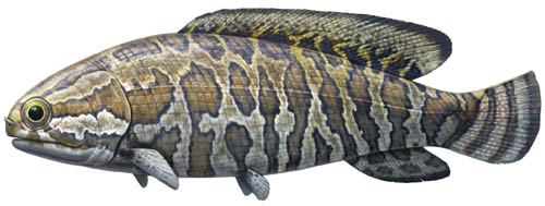 图3 长背鳍阜康鱼生活复原图 (Andrey Atuchin根据徐光辉提供的复原底图彩绘)