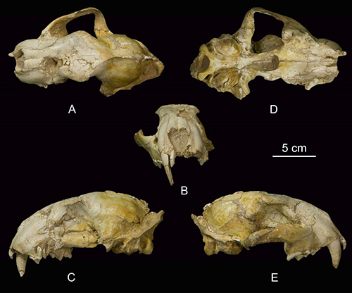 图1 甘肃临夏盆地石磊地点副剑齿虎头骨化石(李雨供图)