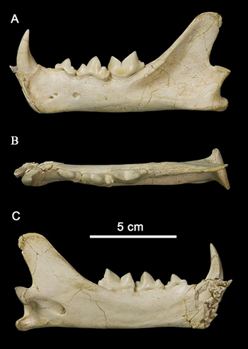 图2 甘肃临夏盆地石磊地点副剑齿虎下颌化石(李雨供图)