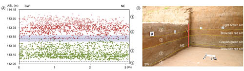 图2:遗址地层划分及遗物剖面分布情况(李浩供图)