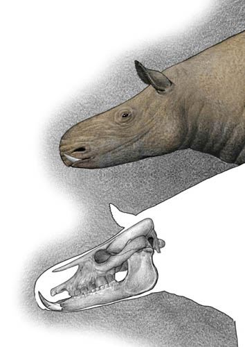 图4 桑氏大唇犀生态复原图(陈瑜绘图)