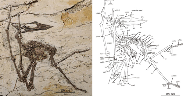 图1 返祖中国翼龙新材料及线条图。(张鑫俊 供图)