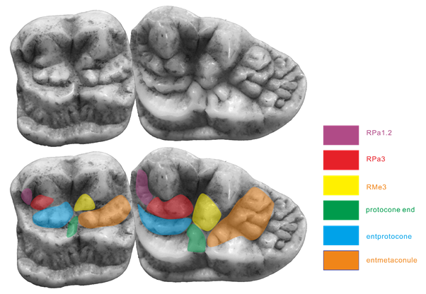 近日,古脊椎所博士研究生江左其杲借助祖先追索的方法,详细研究了对比了大熊猫在晚中新世的直系祖先——禄丰始熊猫和现代熊类的祖先——戴氏祖熊。借助这两个桥梁,研究人员得以建立起严格的大熊猫-熊类牙齿同源体系,并以此为基础提出了熊类牙齿术语的建议。该研究在最新一期古生物学期刊Acta Palaeontologica Polonica 在线发表。
