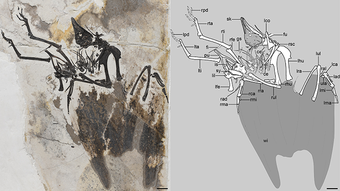 图2 有齿孟子鸟和李氏叉尾鸟头骨比较(王敏供图)