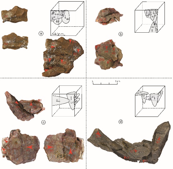 泥河湾盆地作为华北乃至整个东亚史前人类遗址最为集中的地区之一,保存有大量被广泛认可的早更新世石制品。其中,岑家湾遗址(1.1 Ma)以其极高的拼合率为恢复石制品打制过程和评估人类技术与认知能力提供了重要材料。基于对拼合标本的技术解读与序列构建,研究者发现岑家湾遗址史前人类通过翻转台面实现对小块燧石的充分利用,而时代相近的东谷坨遗址更多地通过台面调整、修理获取石片毛坯,体现出对小型石片剥片较强的控制能力以及石器生产中一定程度的预设与规划。与时代较早的小长梁(1.36 Ma)等遗址相比较,所体现的石器生产技术具有明显的进步性。早期人类体质的进化,尤其是脑容量的变化与行为变革息息相关。依据全球人类进化的背景和已有化石材料的脑容量变化情况及石器技术整体的发展,不能否认两者之间的关系。但由于国内目前缺乏该时段的人类化石材料,目前尚不能对此阶段技术进步与体质进化之间的关系提出确切的认识。