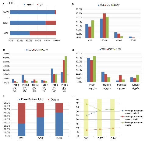 图3 小长梁、东谷坨和岑家湾石制品的对比分析(杨石霞供图)