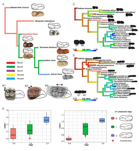 3.熊亚科的牙齿结构演化(江左其杲 供图)