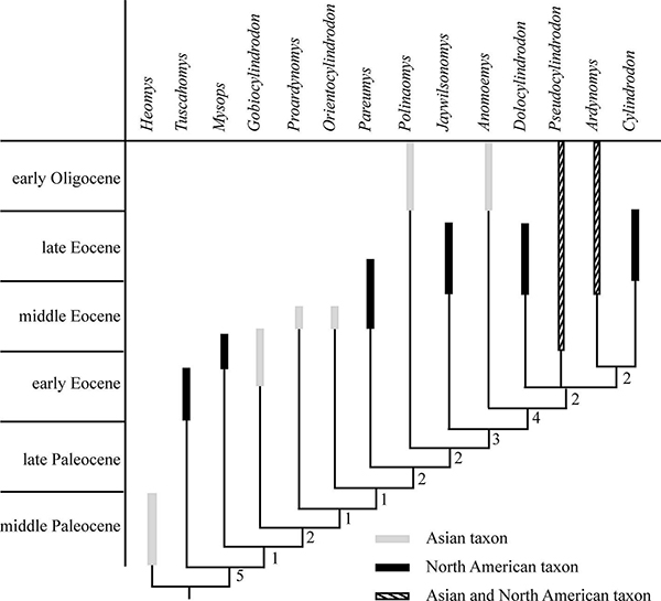 圆柱齿鼠类是一类已绝灭的、半穴居或穴居类型的啮齿类动物,分布于亚洲和北美,化石在北美最为丰富、从下始新统到上渐新统都有发现。过去有关圆柱齿鼠类大量的研究都集中于北美,亚洲近些年来才有一些零星的报道,因此长期以来一直认为北美是该类动物的起源和主要栖息地。